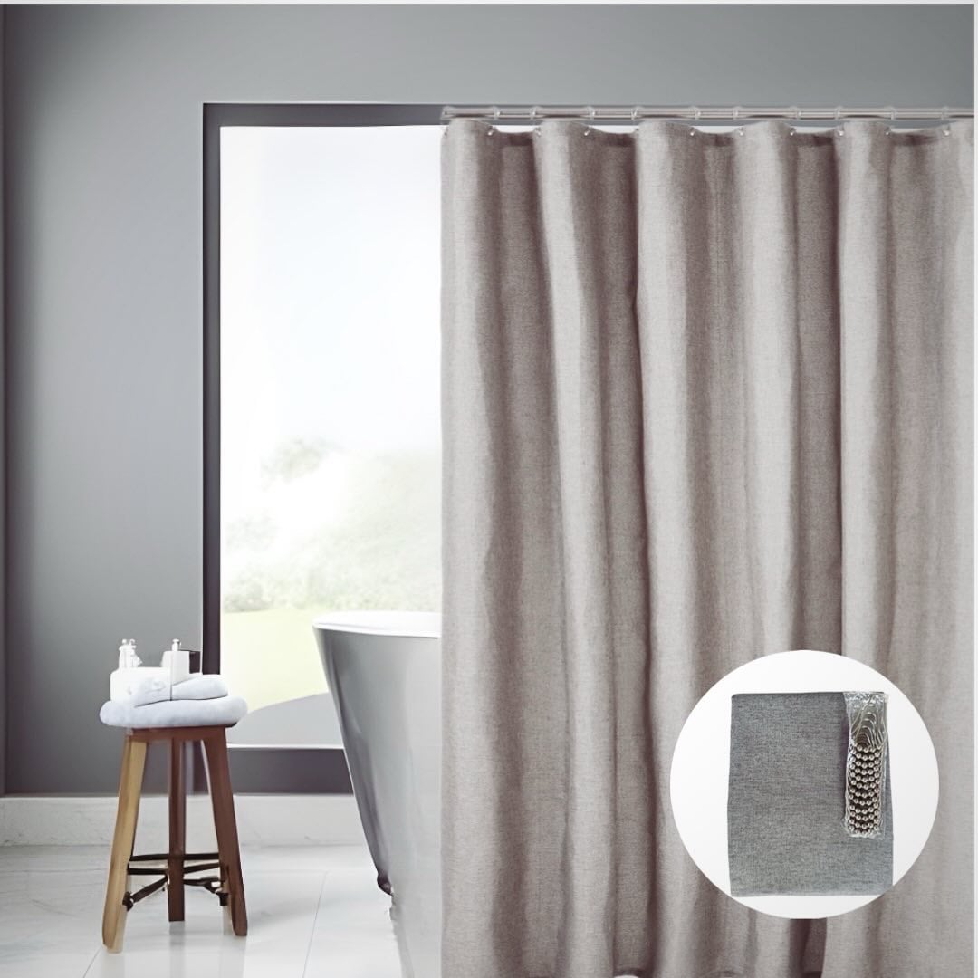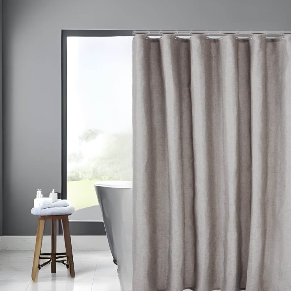 - Belægning på materialet i Grå badeforhæng hørlook sikrer et vandtæt materiale