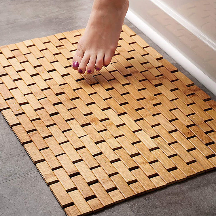 De små trælameller giver dine fødder god komfort og massage, når du går på den skridsikre bambus bademåtte.