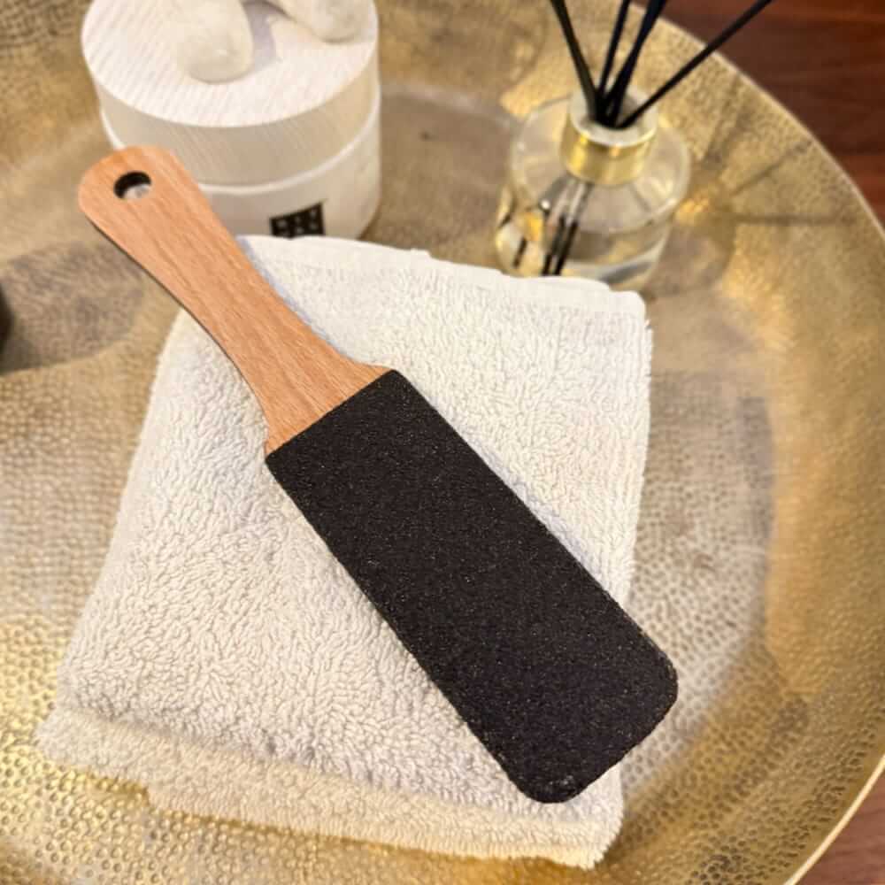 Med finehome fodfil i træ kan du effektivt file hård hud af dine fødder. Forkæl dine fødder med vores naturlige design, der ligger godt i hånden. Husk efterbehandling med fodcreme.