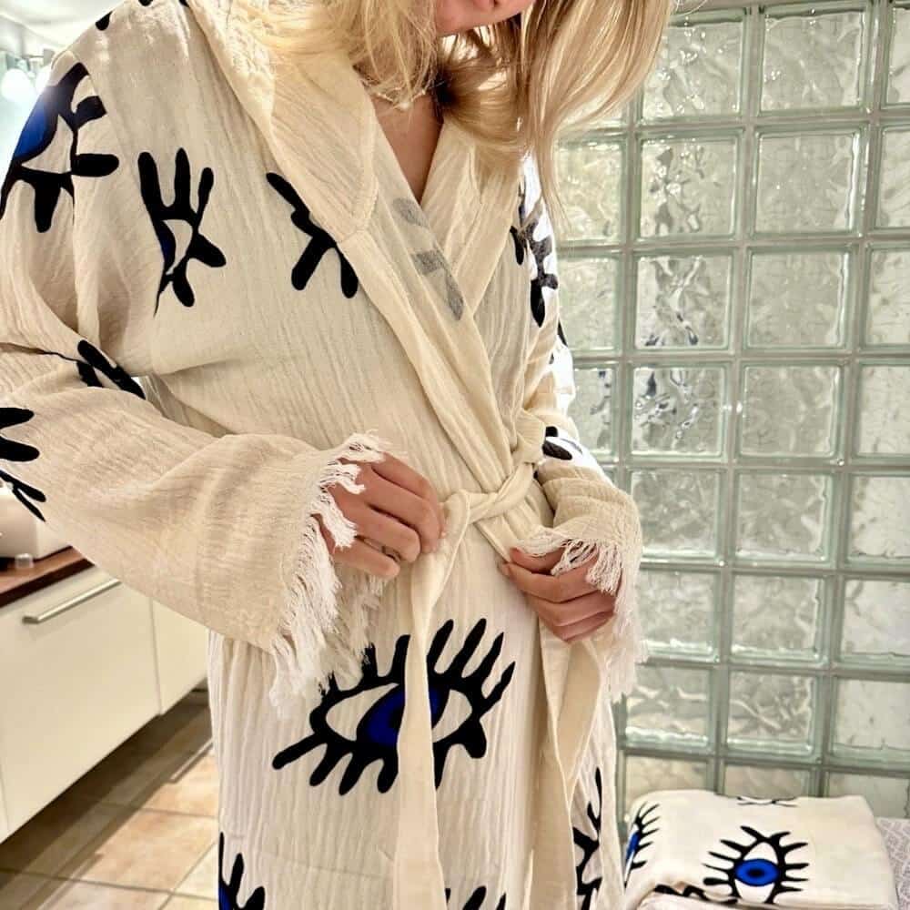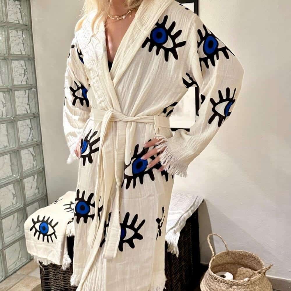 Vask af morgenkåbe med øjne i 100% tyrkisk bomuld
