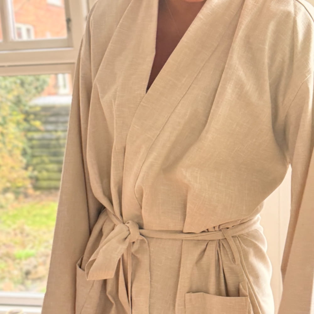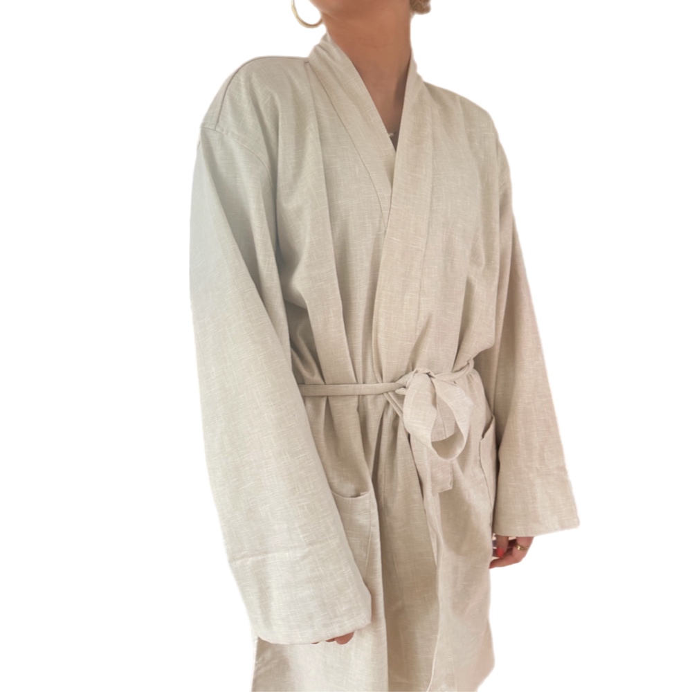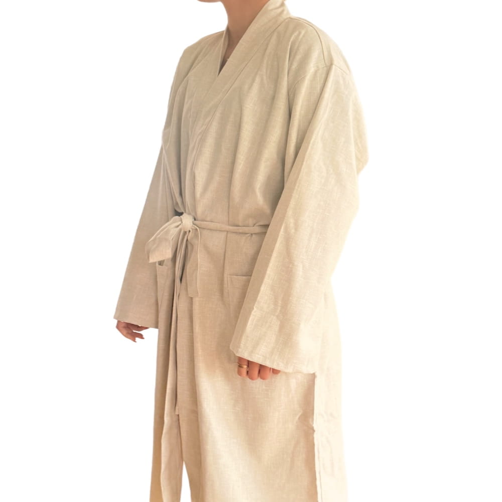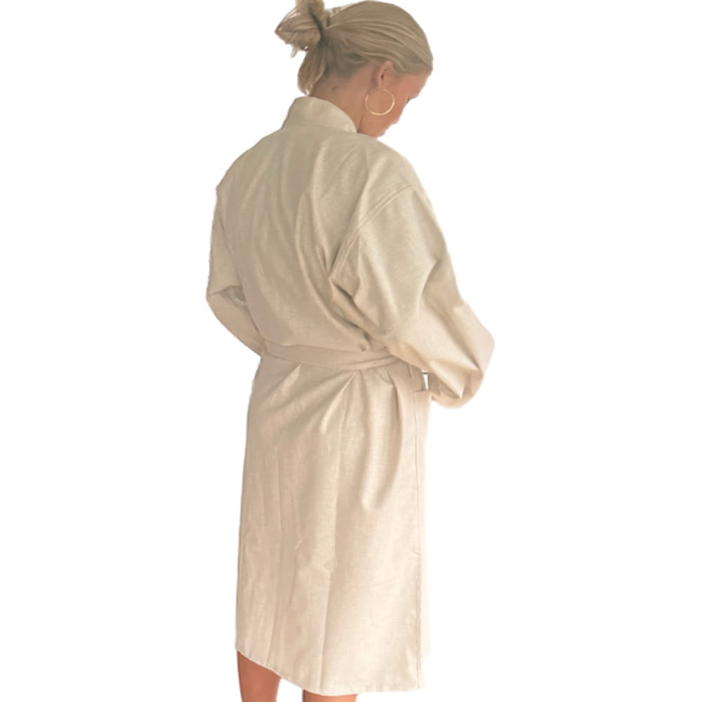 Oplev luksus med vores linned badekåbe i naturfarve i 100% hør. Mortenkåben / Badekåben er åndbar og behagelig at have på.