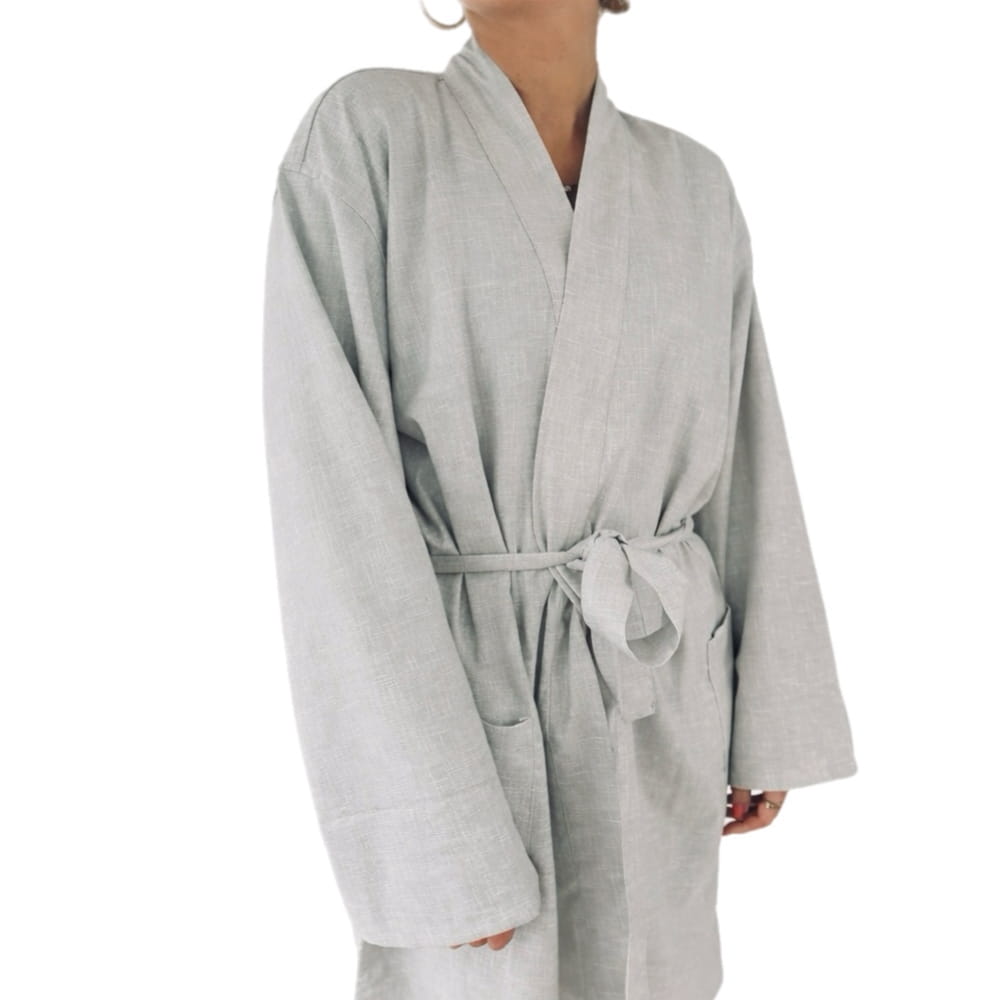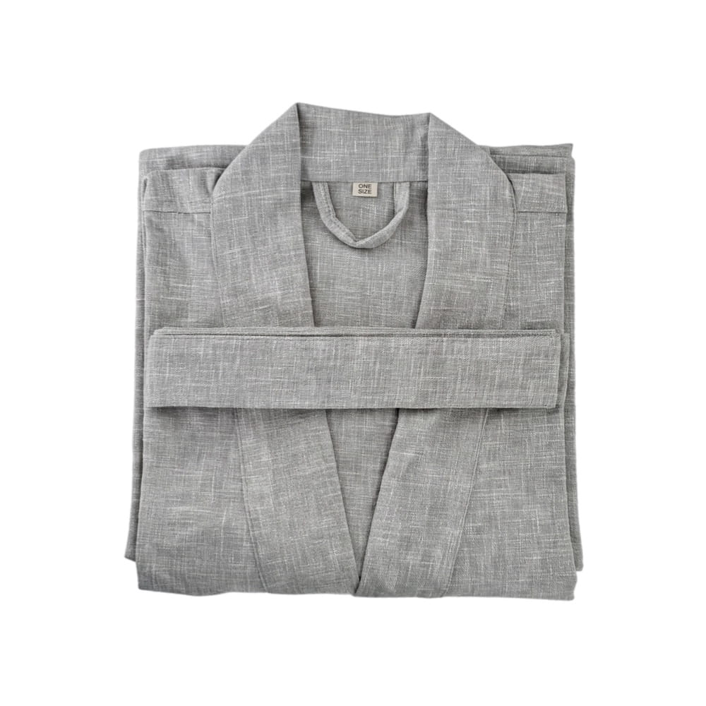 Find ro og velvære følelse med finehome lys grå badekåbe hør som føles eksklusiv og åndbar. Badekåben er perfekt til spa, wellness og hjemmebrug. One size modellen har en rigtig god pasform og modellen er både til kvinder og mænd. Den lyse grå farve er et tidløst og stilrent design.