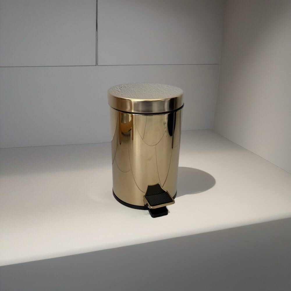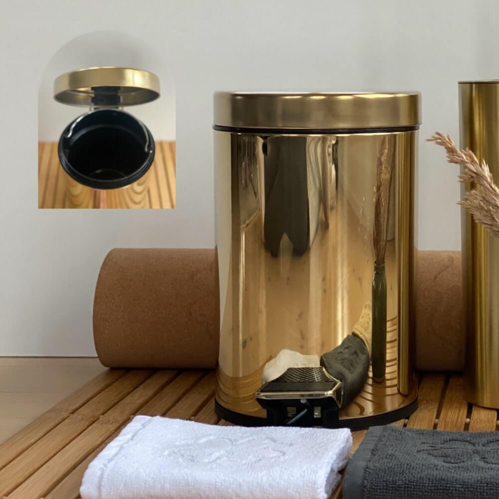 Giv dit badeværelse et strejf af glamour med finehome toiletspand blank guld. Toiletspanden i spejlblank guld er ikke bare en praktisk nødvendighed, den giver nemlig rummet et luksuriøst løft. finehome moderne toiletspand med guldlook skaber spil og stil på badeværelset. Toiletspanden har en udtagelig sort inderspand med håndtag, det vil sige, at den er nem at tømme. Toiletspanden er perfekt til både gæstebadeværelset og familiens badeværelse