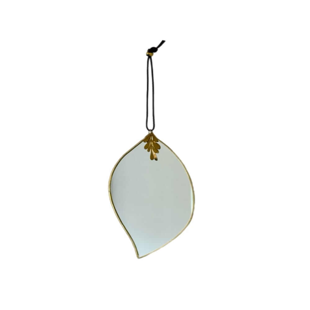 Opgrader dit interiør med et smukt minimalistisk spejl med guldlook og lædersnor.