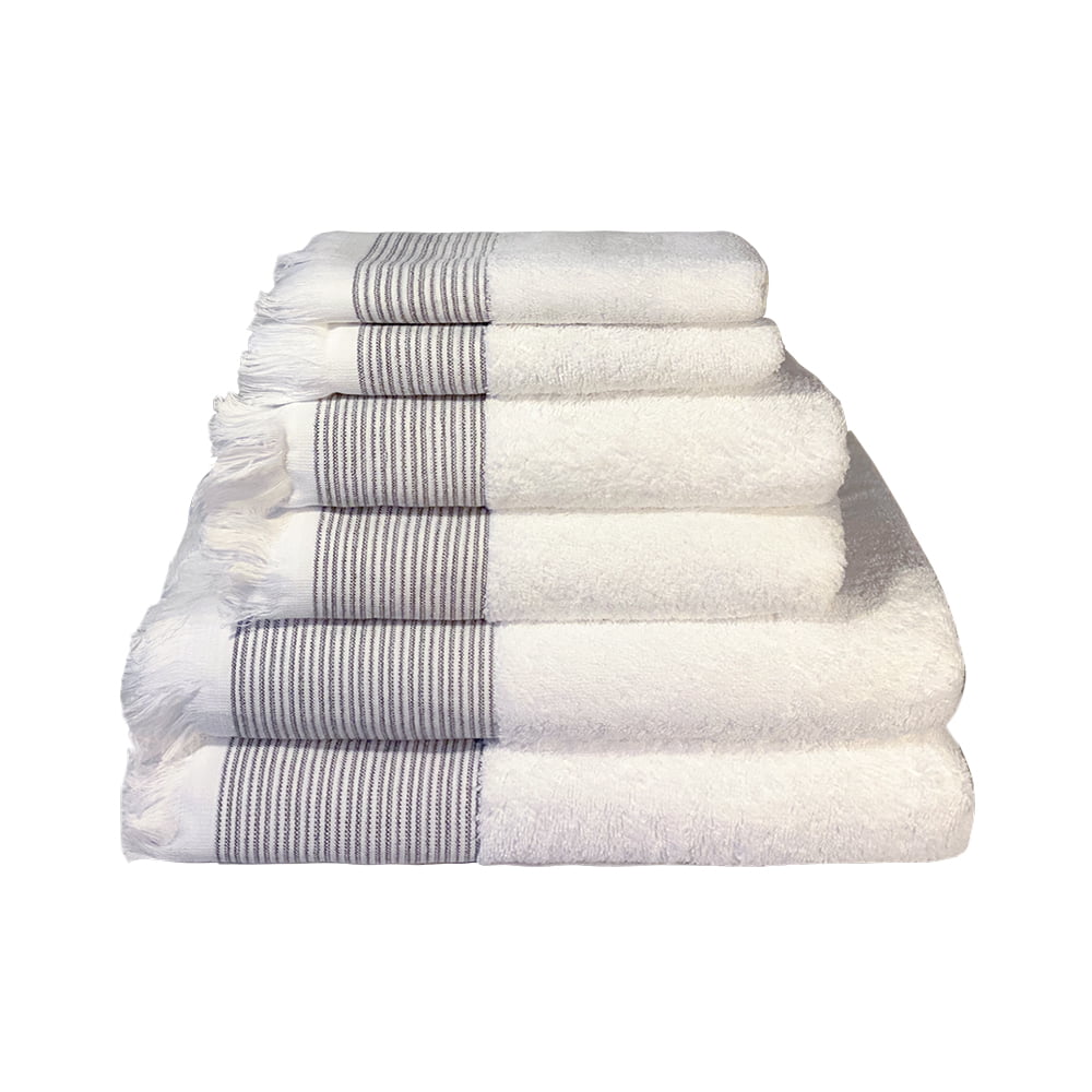 finehome Cenon Design hvide badehåndklæder med frynser i begge ender tilbydes i 3 smukke skandinaviske og nordiske farver: Hvid, grå og beige samt i 3 størrelser: 70×140, 40×60, 50×100.