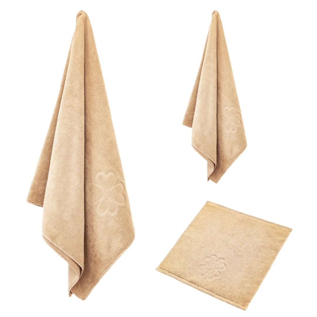 Bæredygtige håndklæder sandfarve – dobbeltvundet luksus