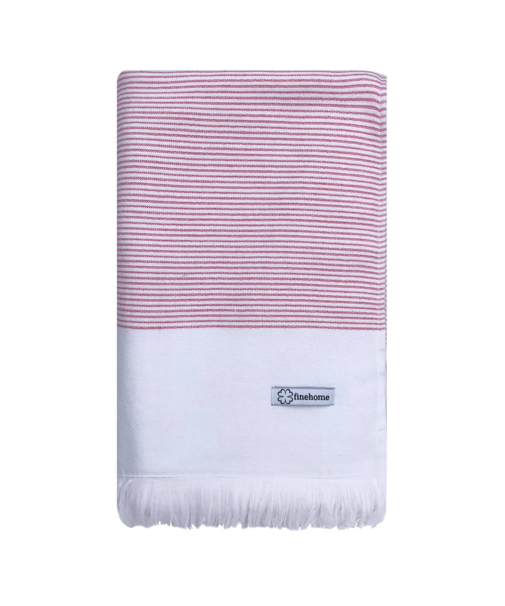Tyrkisk håndklæde til sommerhus, badeværelse samt outdoor room. Prøv et tyrkisk håndklæde 100×150 cm fra luksus udgaven af finehome smukke hammamhåndklæder 100×150 som strandhåndklæde, på solvognen eller som det store luksus håndklæde med ekstra længde og bredde på badeværelset. finehome SEFA hammamhåndklæder med røde striber er lidt kraftigere en det helt almindelige tynde tyrkiske håndklæde.