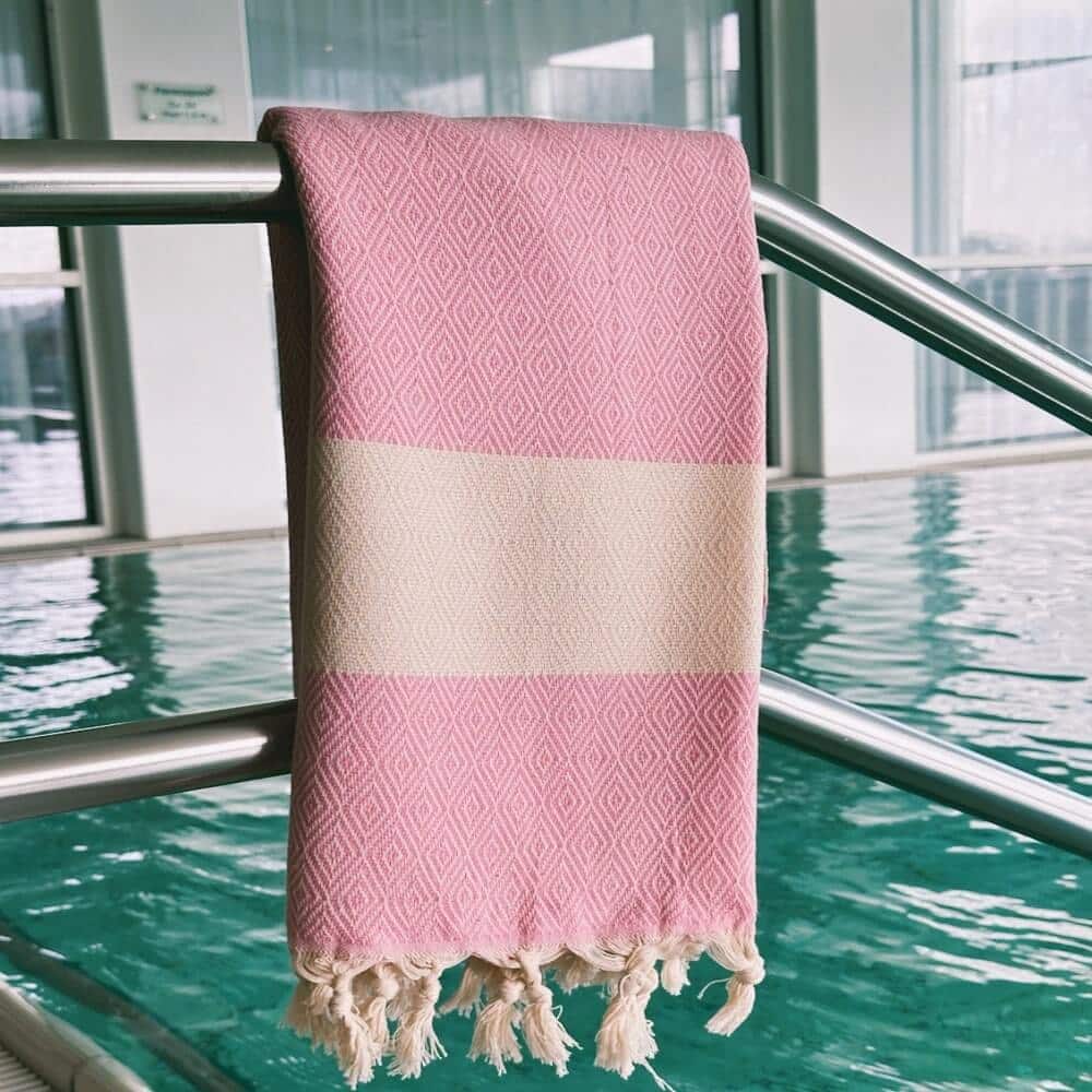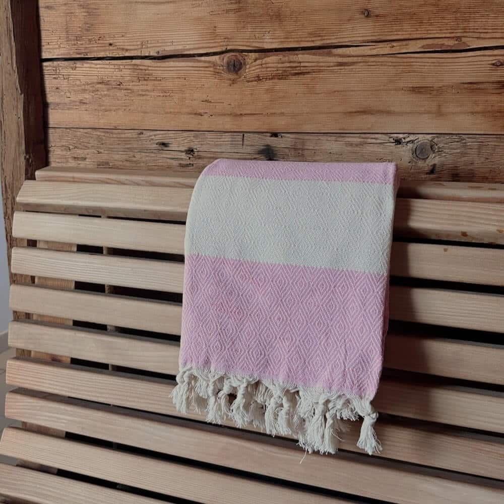 Bestil et lyserødt hammamhåndklæde i dag og oplev luksus og hyggestemning.