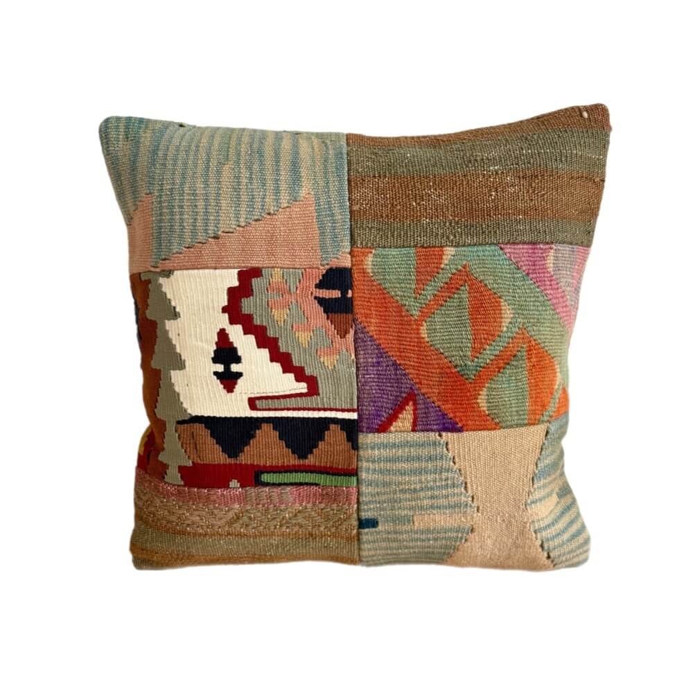 Pudebetrækket, en unik version af en pude lavet i uld, som er syet af vintage kelimtæpper fra Tyrkiet skal renses. Køb dine smukke kelimpuder online og få leveret hurtigt i hele Danmark.
