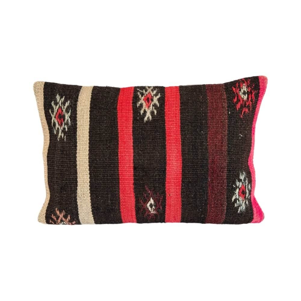 Virkelig smuk ægte håndvævet kelim pude 137 i skønneste farver. måler 40×60 cm. Den aflange orientalske kelim pude er håndsået af ægte vintage kelimtæppe fra Tyrkiet. Den store kelimpude er håndvævet i nøje udvalgte flotte farvestrålende farvenuancer. Mix eventuelt store og små puder. Sæt de populære tyrkiske kelim puder sammen på kryds og tværs for at få et fantastisk flot look i sofaen og dagligstuen..