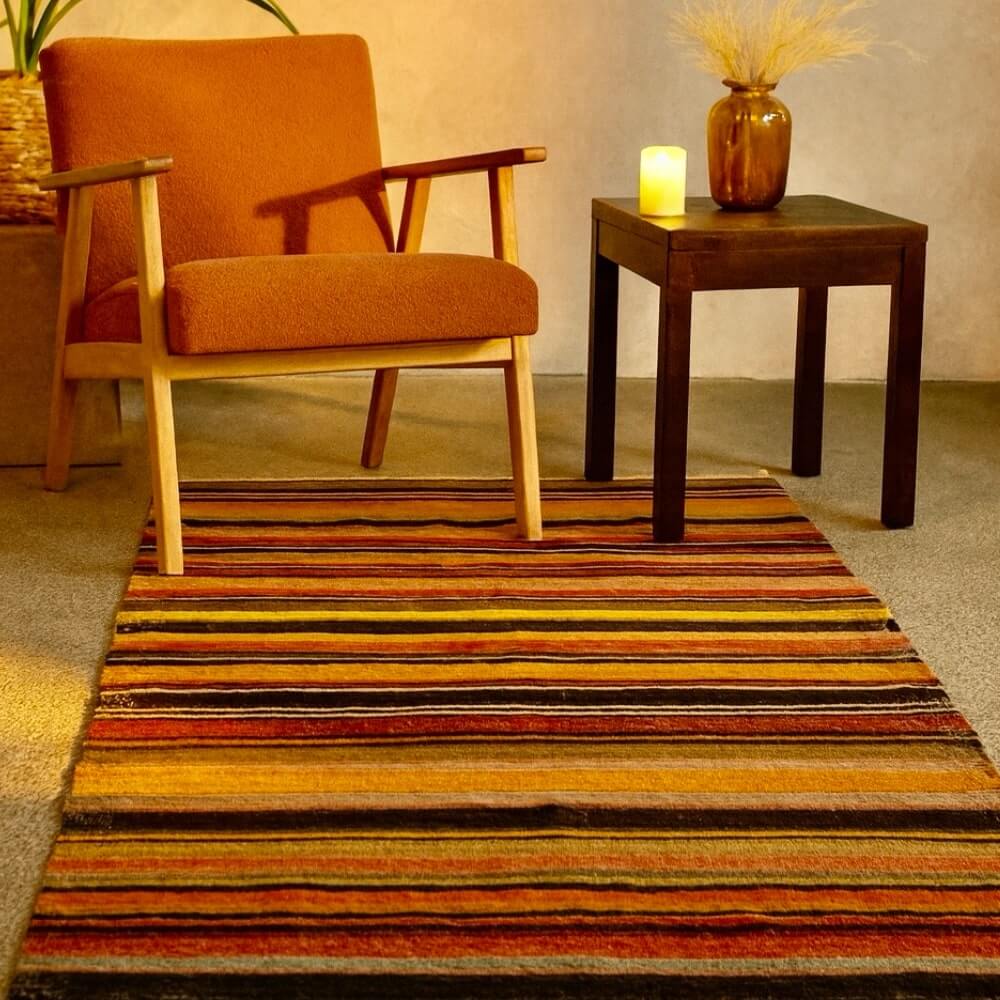 Skab varme og personlighed i dit hjem – bestil din smukke kelimløber med farvestrålende striber i dag.