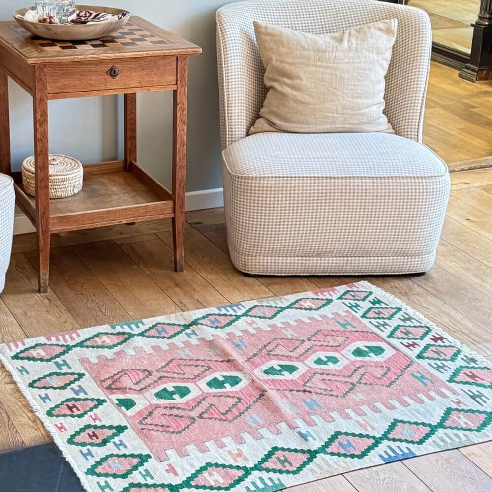 Kelimtæppet er meget slidstærk og så beskytter det dit gulv på udsatte steder.