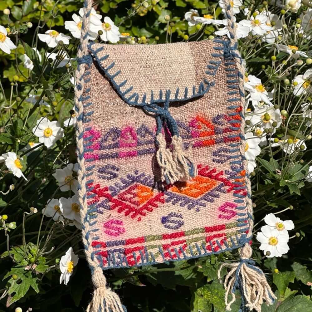 Ægte håndvævet firkantet vintage kelim skuldertaske til dig der ønsker en farvestrålende og unik kelim taske.