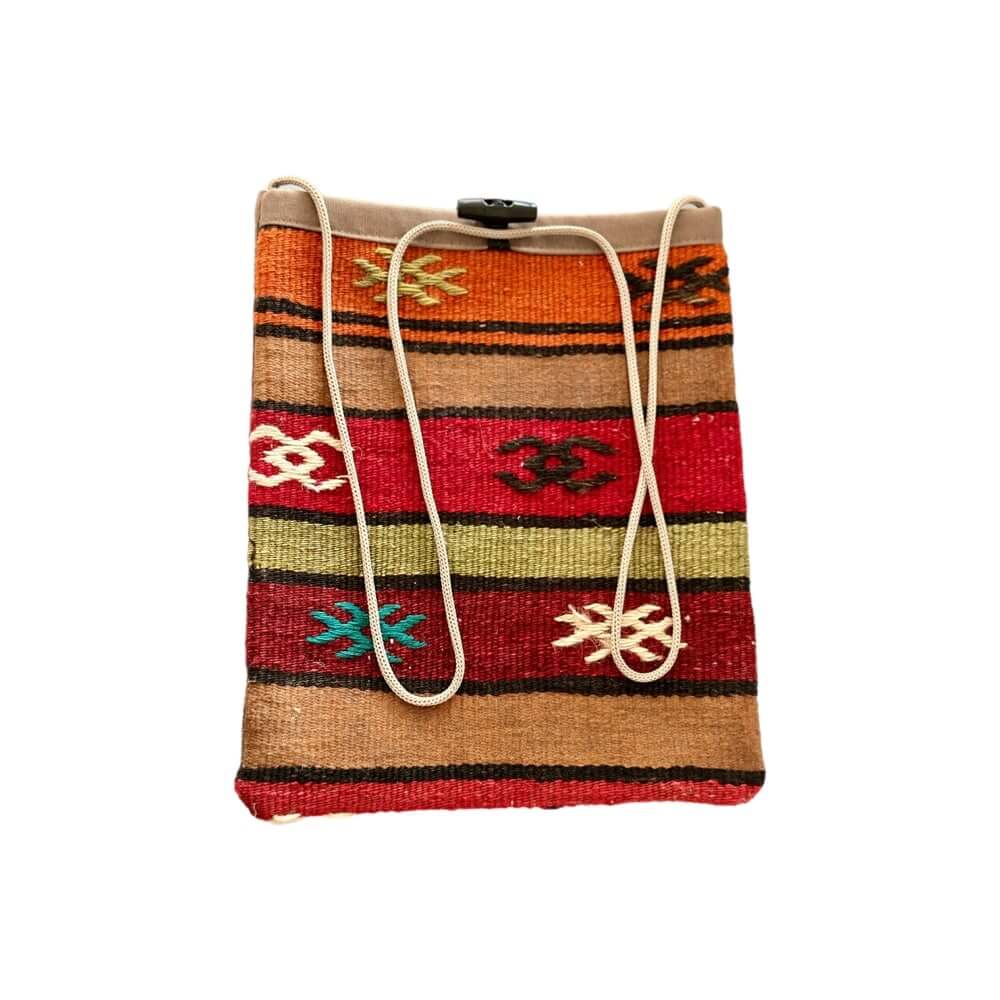 Ægte håndvævet firkantet vintage kelim skuldertaske til dig der ønsker en farvestrålende og unik taske.