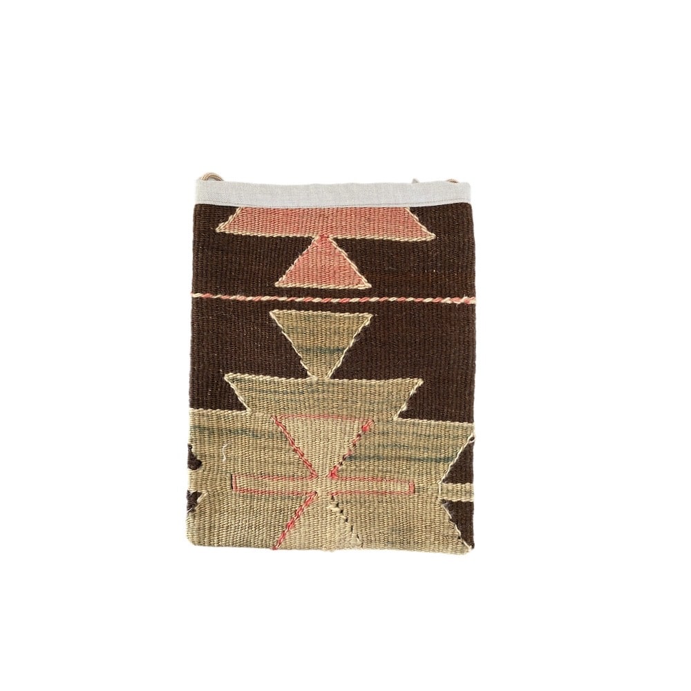 Skal du i byen og kun have få ejendele med kan de være en god idé at benytte en lille vintage kelim taske til skulderen. finehome lille vintage kelim taske har nemlig lynlås der kan lukkes helt. Lynlåsen sikrer, at dine personlige ejendele bliver i tasken. finehome vintage kelim taske med smukt mønster i lyse røde, brunlige farver med et strejf af grøn er en skuldertaske. Stilen er unika vintagestil.