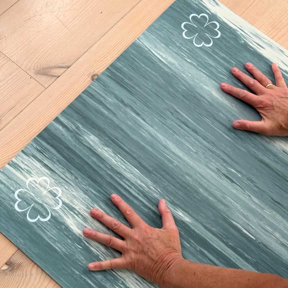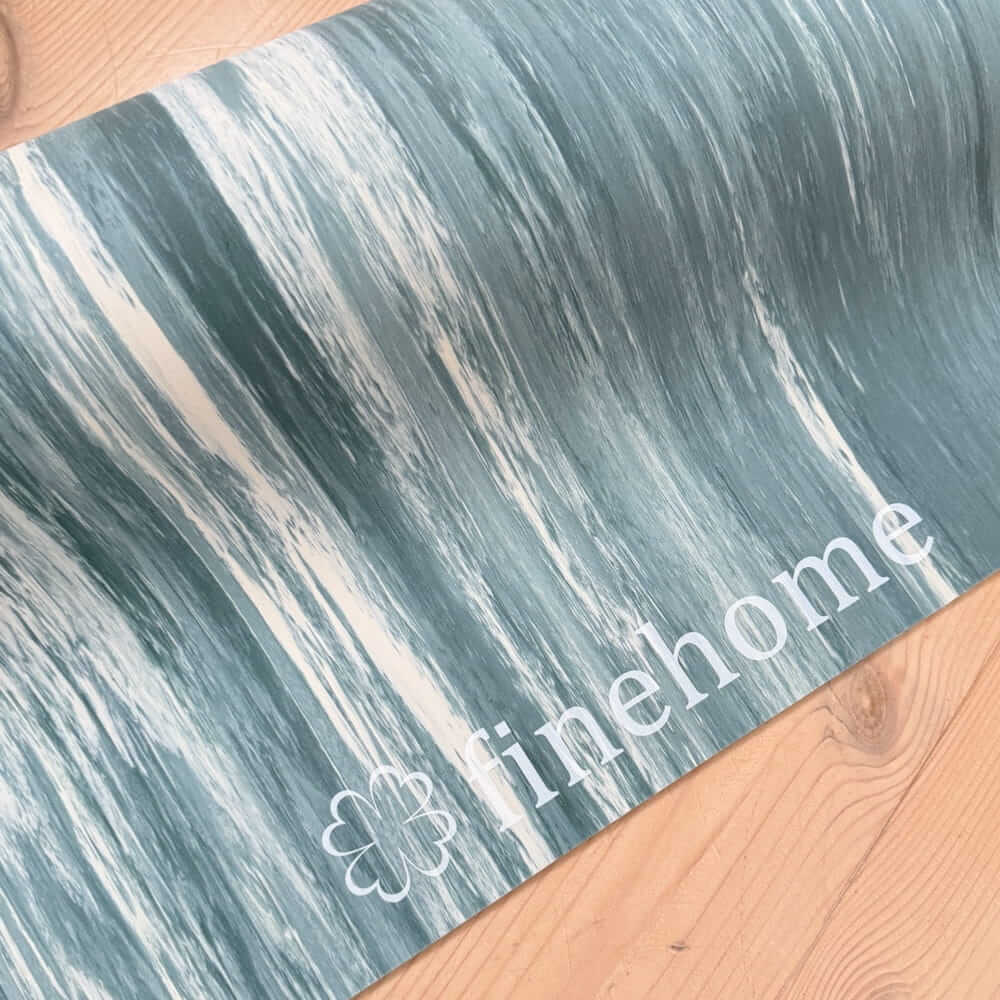 Eksklusiv og skridsikker yogamåtte i ren naturgummi med ekstra bredde og perfekt støtte. Måtten måler 183 cm i længden og 68 cm i bredden, så du får optimal bevægelsesfrihed i både yoga, pilates og funktionel træning. finehome 4 mm tykke naturgummi giver en ideel balance mellem komfort og stabilitet, så du står sikkert i alle stillinger. Måtten har en smuk petrol blå farve med marmoreret spil i lyse nuancer – inspireret af havets dybde og bevægelse. Hver måtte er unik i sit udtryk.