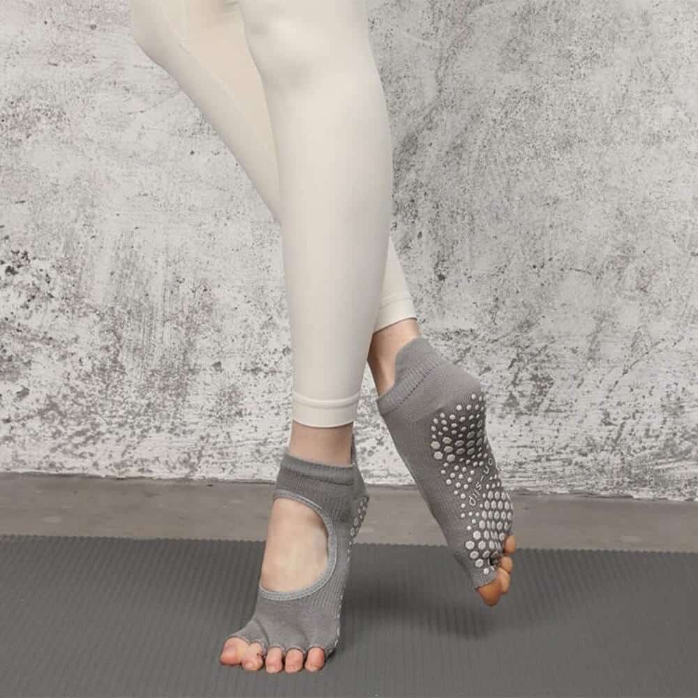 finehome skridsikre grå yogasokker uden tæer er et populært valg, der er tilgængeligt i en række farver, herunder grå, sorte og lys beige. Sokkerne er lavet af en blanding af bomuld og polyester og har klæbrige prikker i bunden for bedre greb.